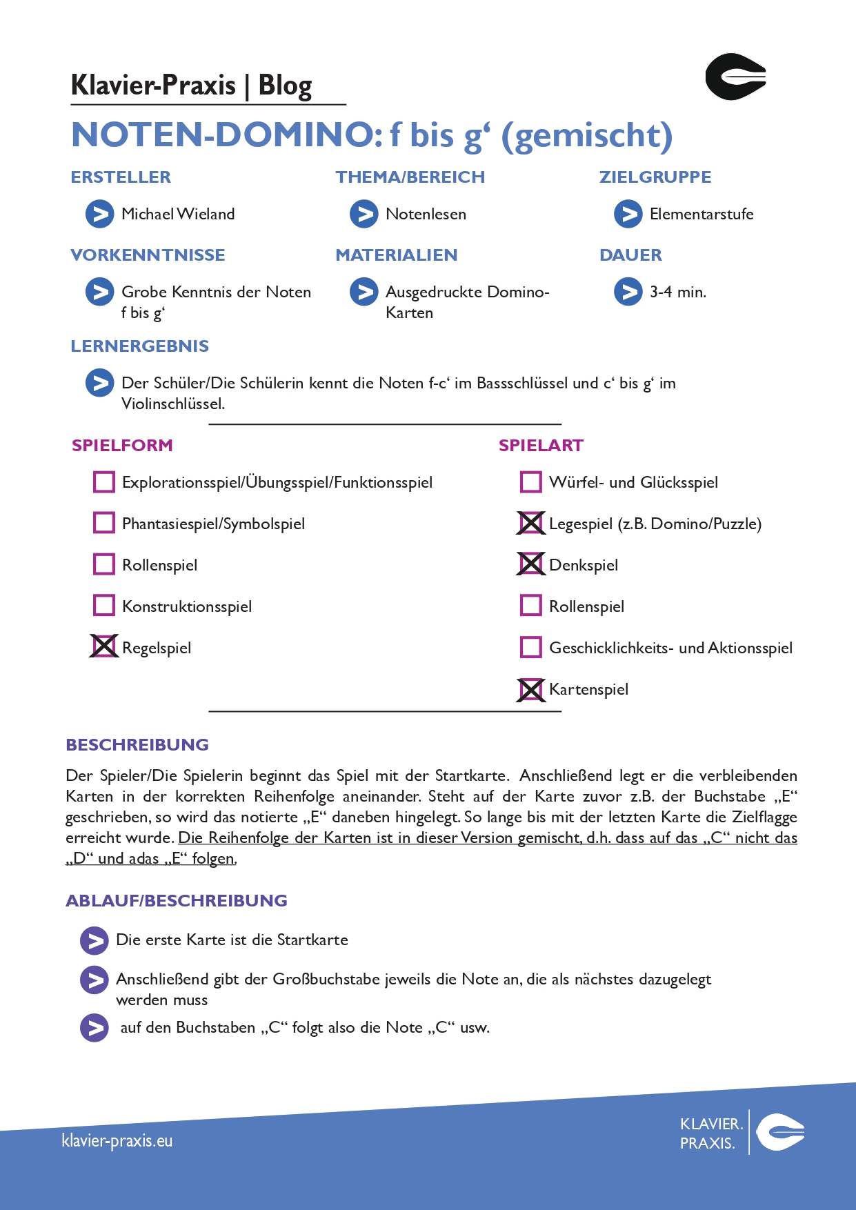 Zielgruppe: Elementarstufe – grobe Kenntnis der Noten f bis g‘ von Vorteil